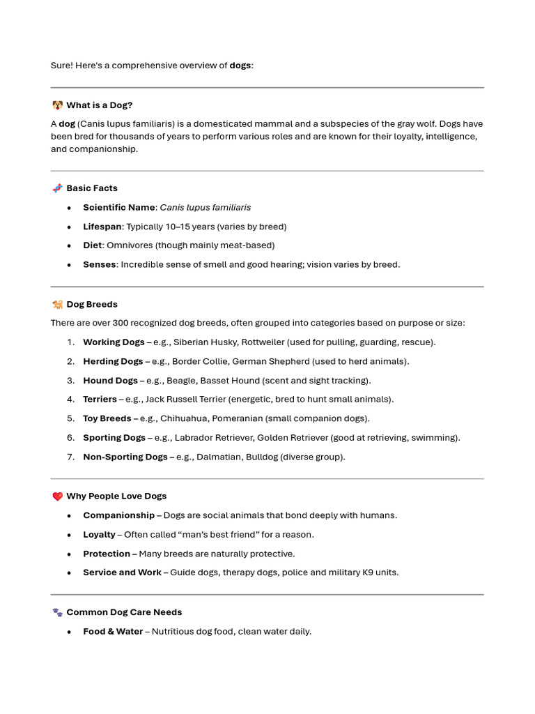 • Companionship – Dogs are social animals that bond deeply with humans.