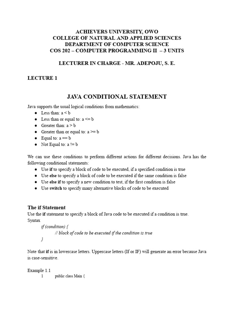 JAVA CONDITIONAL STATEMENT