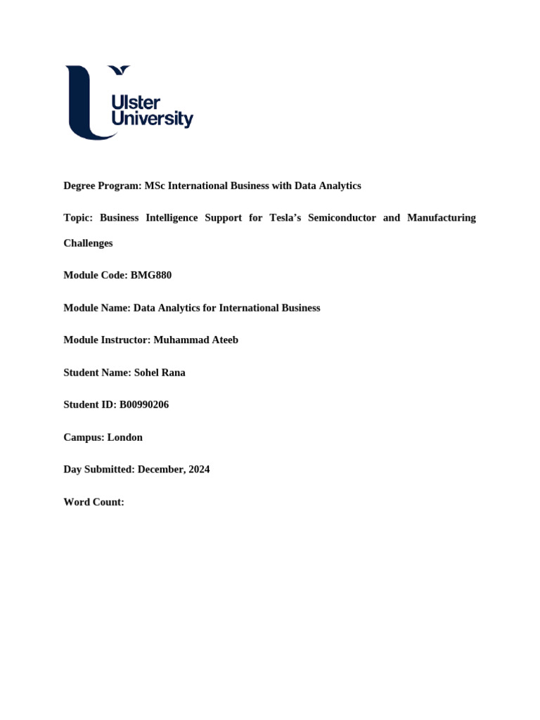 Topic: Business Intelligence Support for Tesla’s Semiconductor and Manufacturing