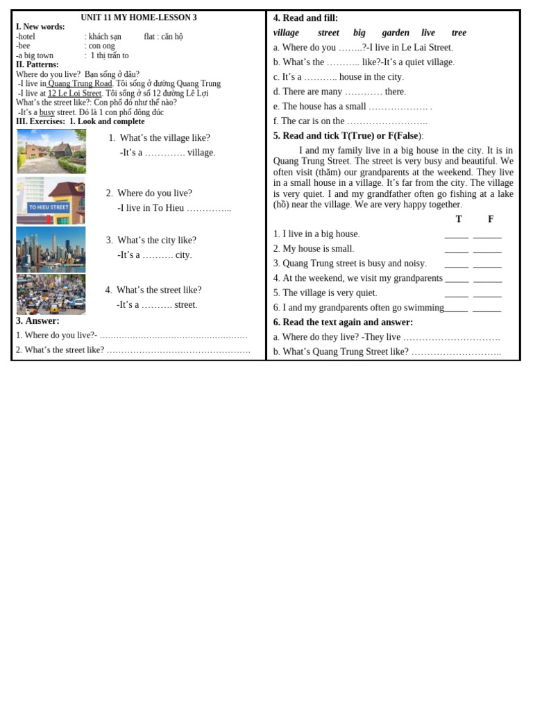 Where do you live? Bạn sống ở đâu? c. It’s a ……….. house in the city.