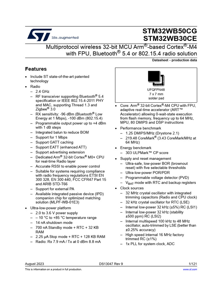 Multiprotocol wireless 32-bit MCU Arm®-based Cortex®-M4