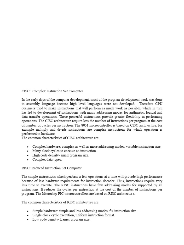 of number of cycles per instruction. The 8051 microcontroller is based on CISC architecture, for