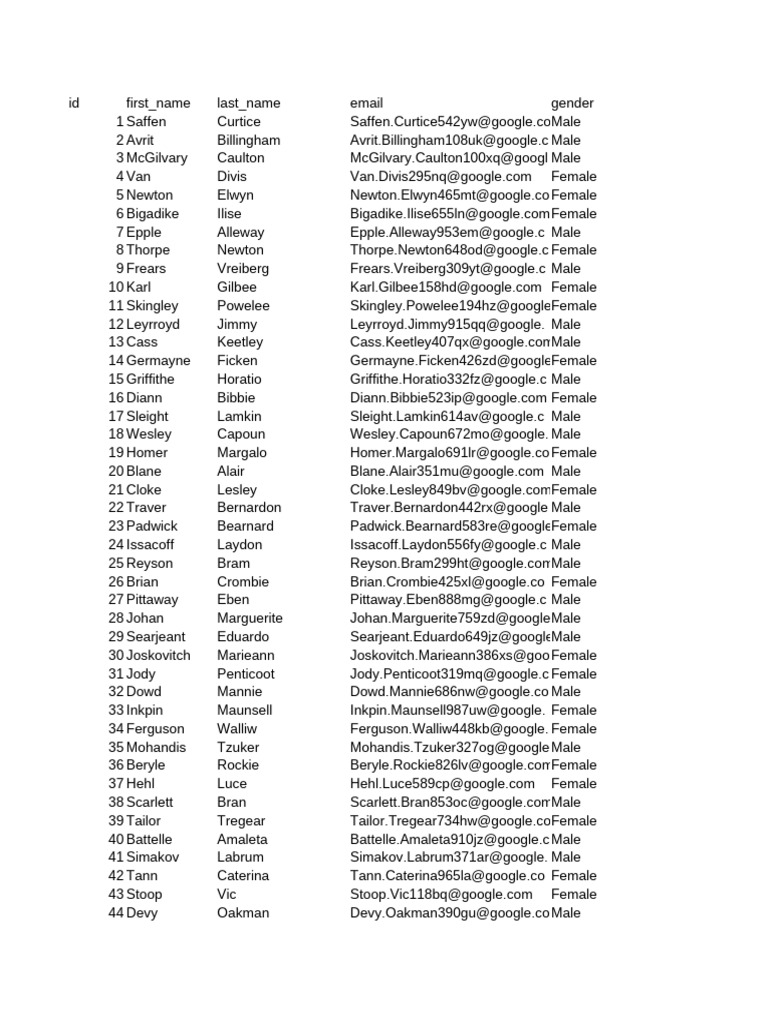 id first_name last_name email gender