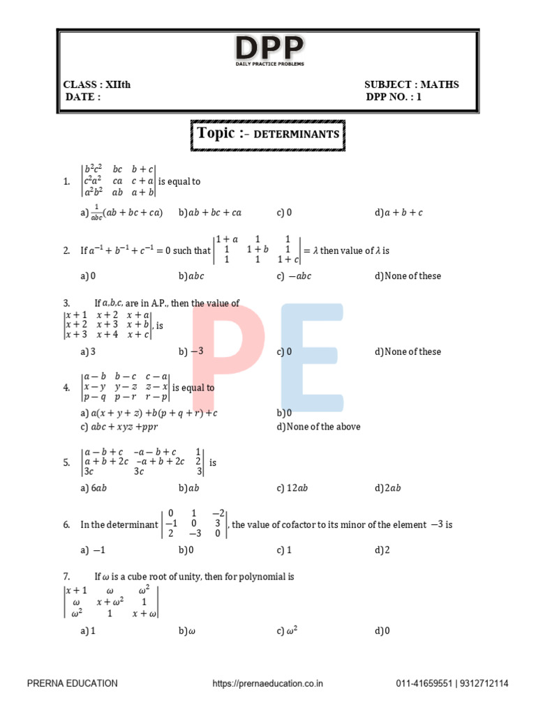 18. If 𝑎, 𝑏, 𝑐 are unequal what is the condition that the value of the determinant, Δ ≡