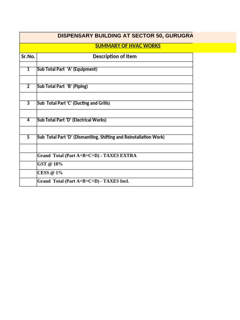 Dispensary Building at Sector 50, Gurugram: Summary of Hvac Works SR - No. Description of Item