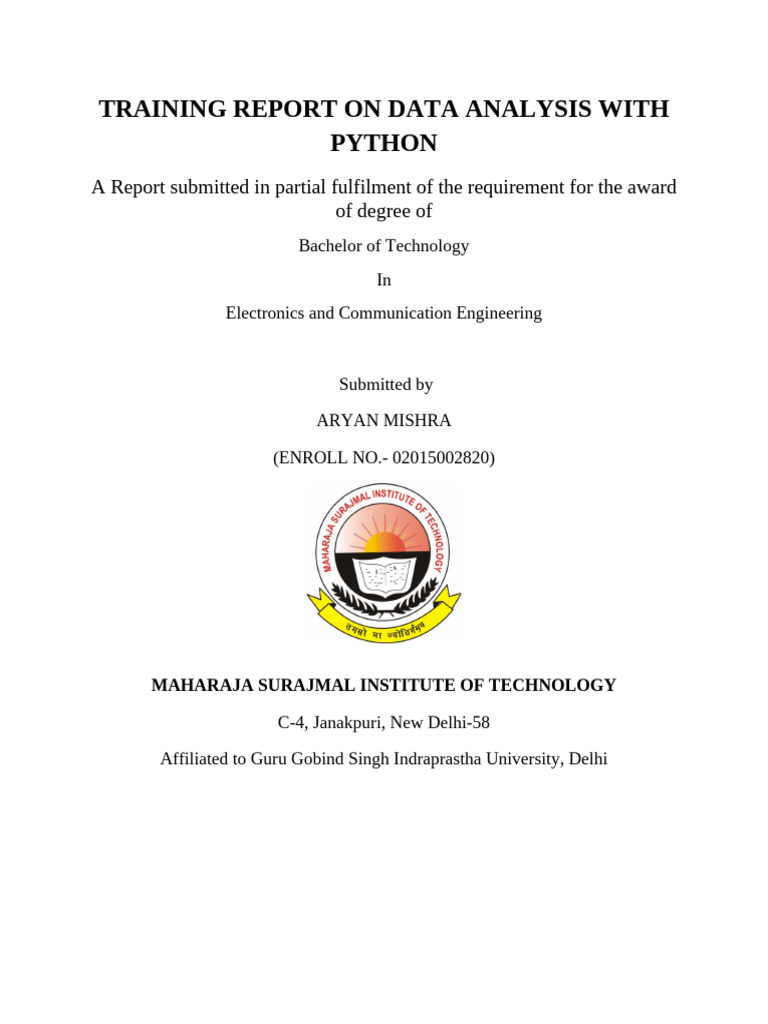 TRAINING REPORT ON DATA ANALYSIS WITH