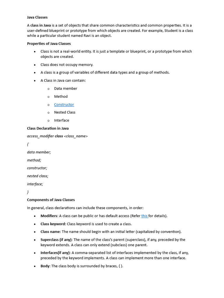 Components of Java Classes