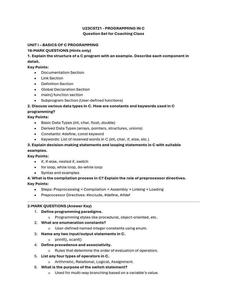 • File handling functions: fopen(), fclose(), fscanf(), fprintf()