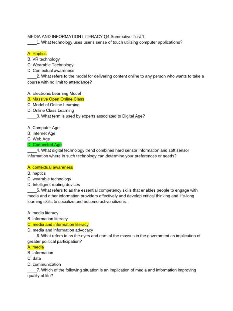 MEDIA AND INFORMATION LITERACY Q4 Summative Test 1