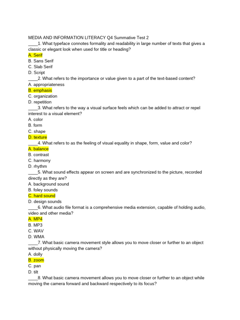 MEDIA AND INFORMATION LITERACY Q4 Summative Test 2