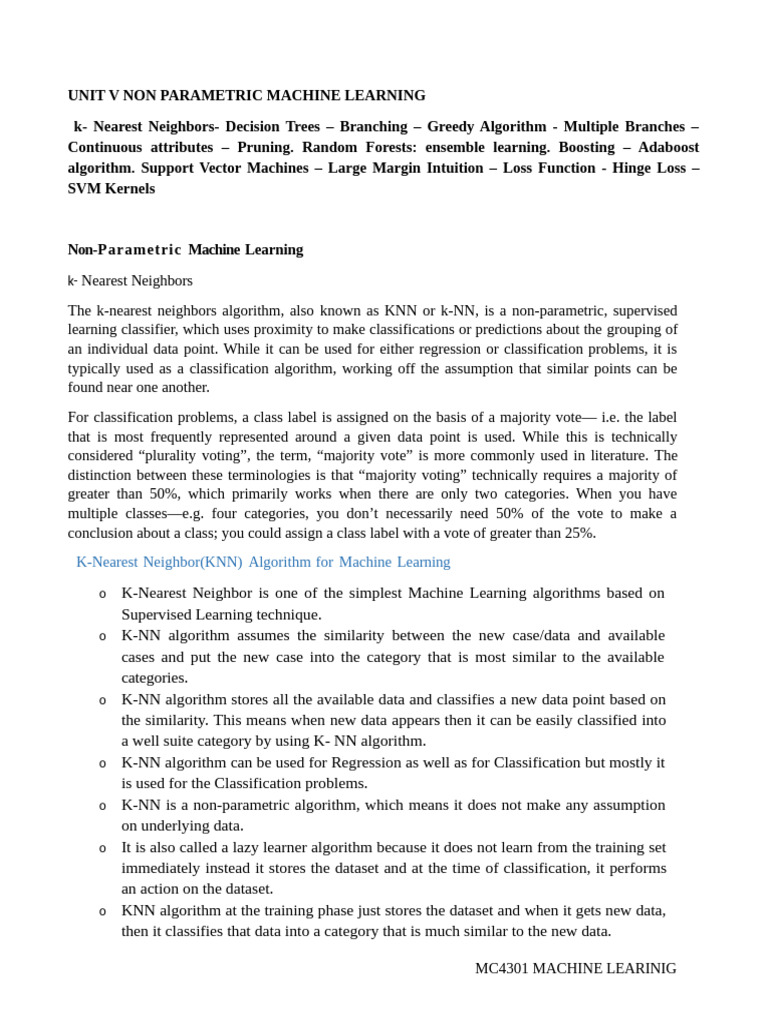 UNIT V NON PARAMETRIC MACHINE LEARNING
