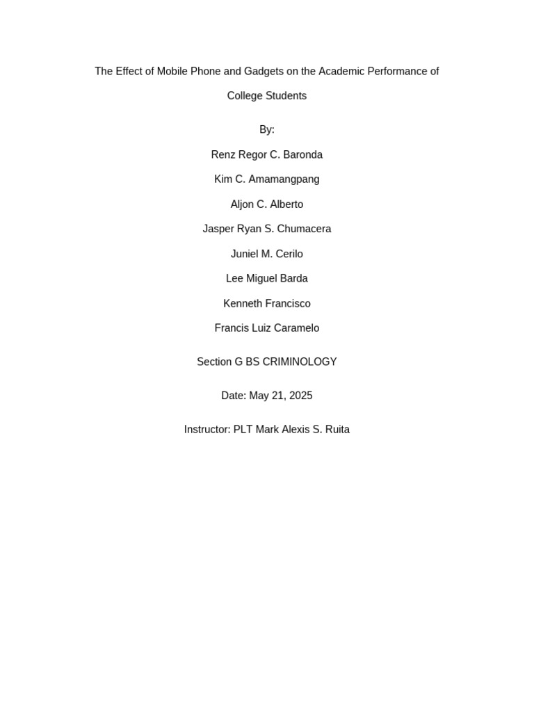 The Effect of Mobile Phone and Gadgets on the Academic Performance of