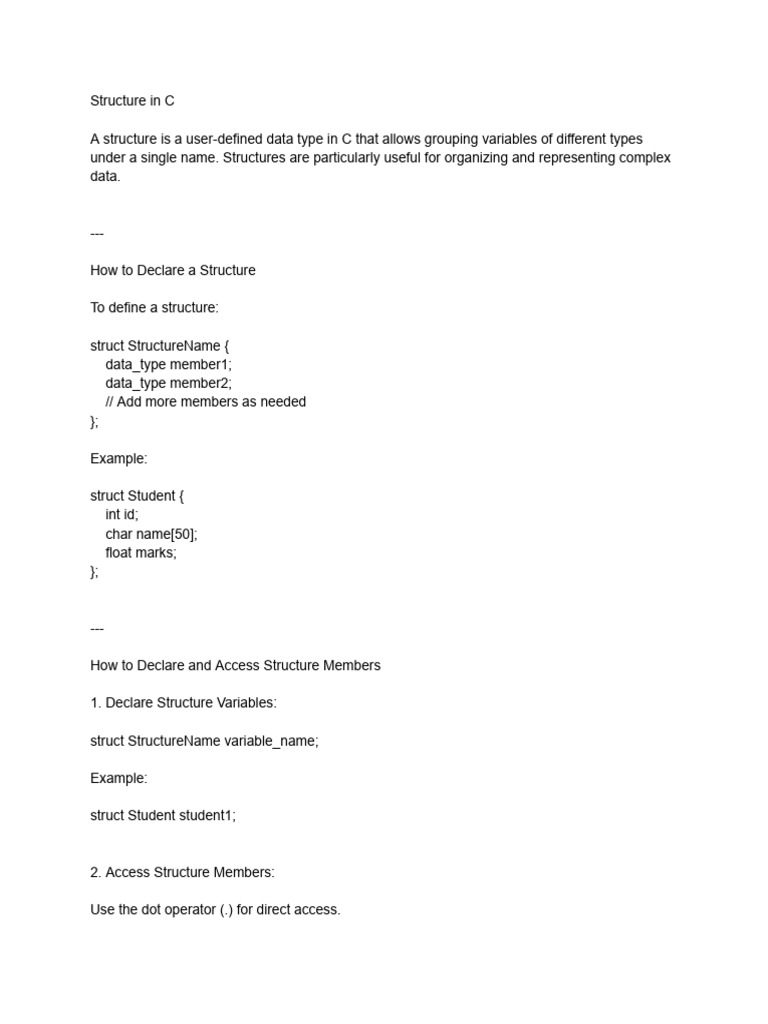under a single name. Structures are particularly useful for organizing and representing complex