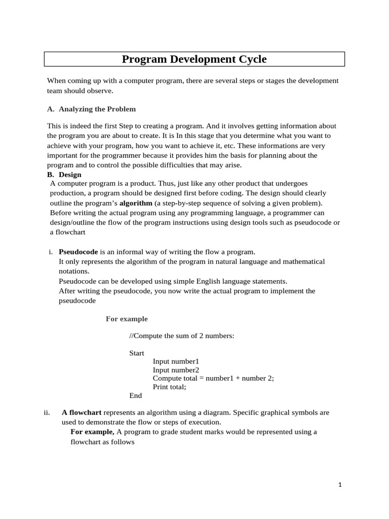 NB: documentation should start immediately after the problem analysis stage. Thus, it is not