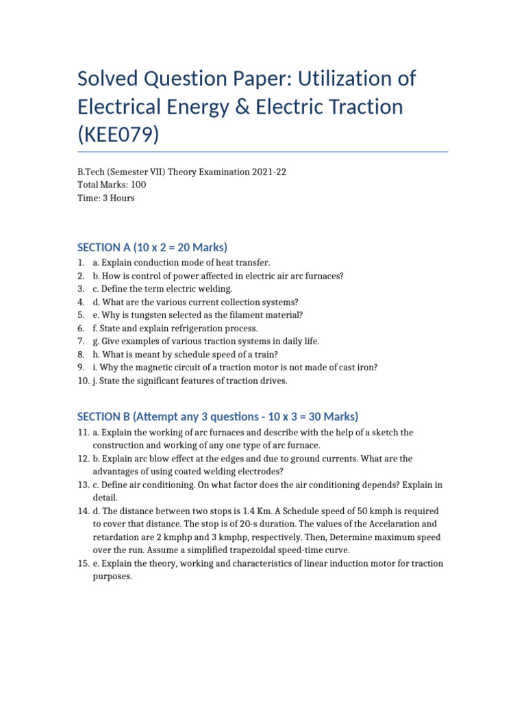 Solved Question Paper: Utilization of