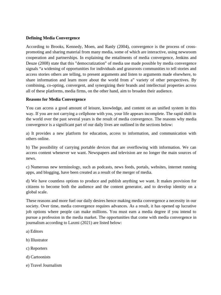 as he exemplified. Therefore, in this first part of definition, media convergence can be described
