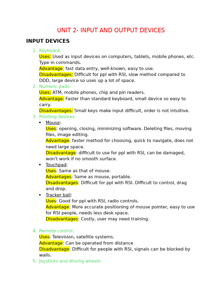 UNIT 2- INPUT AND OUTPUT DEVICES