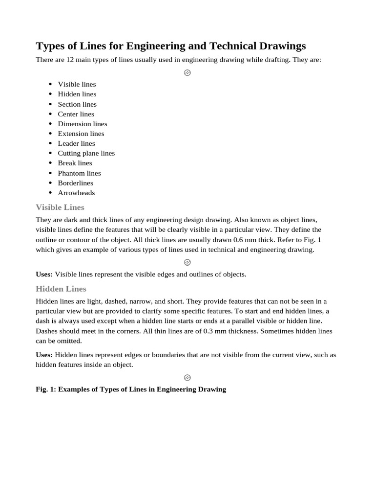 Fig. 2: Various Types of Lines Used in Technical Drawings