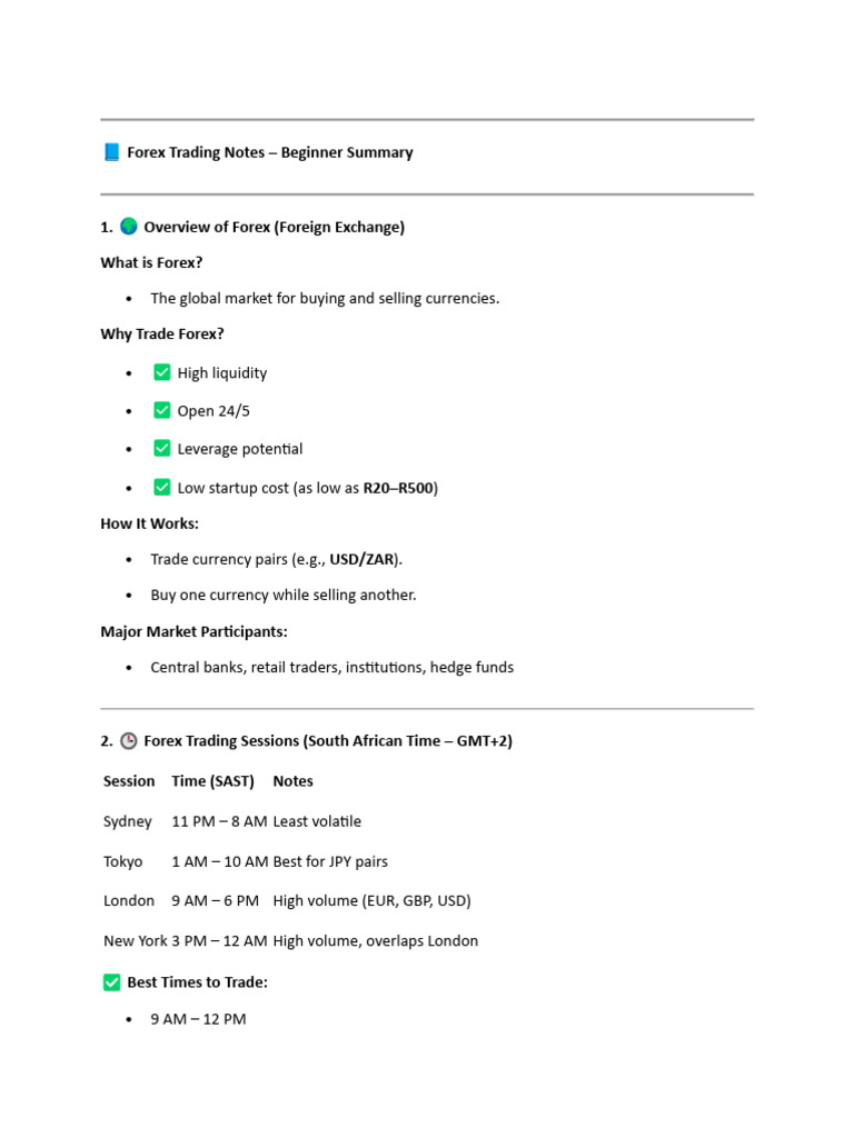 2. Forex Trading Sessions (South African Time – GMT+2)