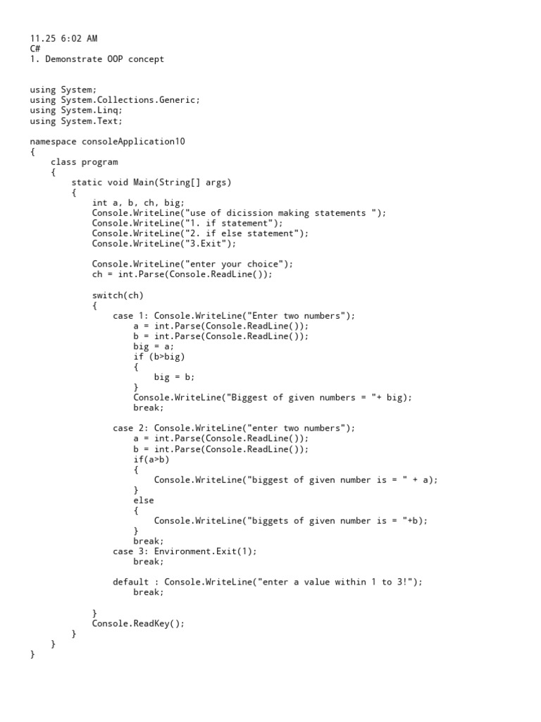 Console.WriteLine("Biggest of given numbers = "+ big);
