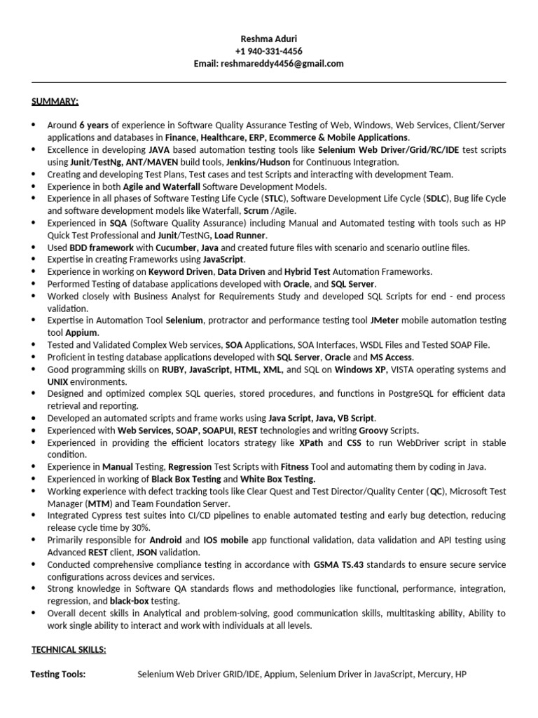 Eclipse, HTML, Internet Explorer, Google Chrome, Safari, Mozilla Firefox, JavaScript, XML, XPath, Git, Quality Center, SQL,