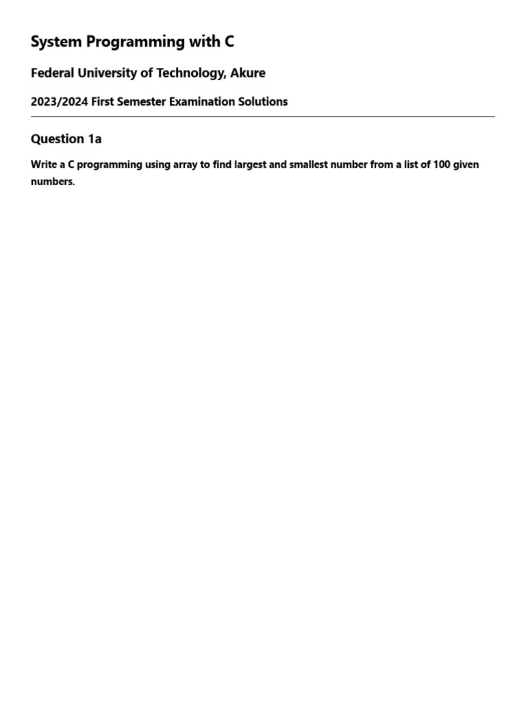 Write a C programming using array to find largest and smallest number from a list of 100 given