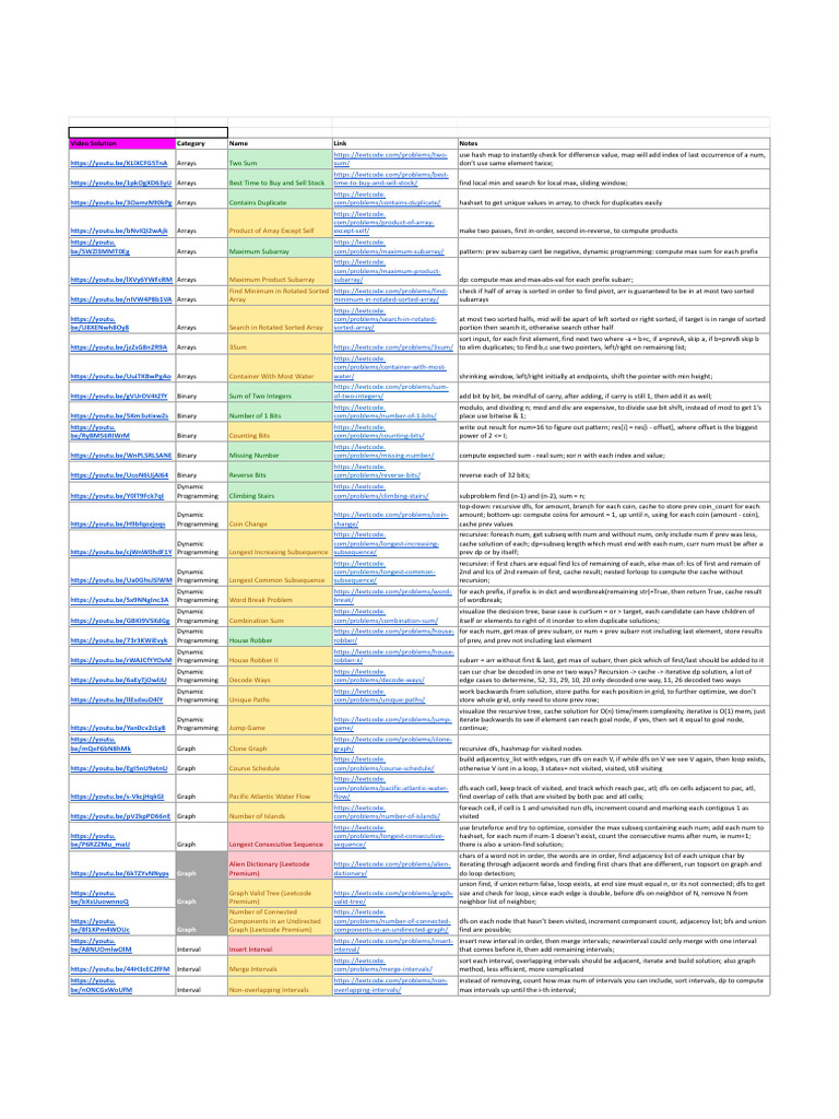 Video Solution Category Name Link Notes