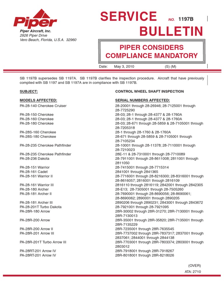 SERVICE BULLETIN NO. 1197B