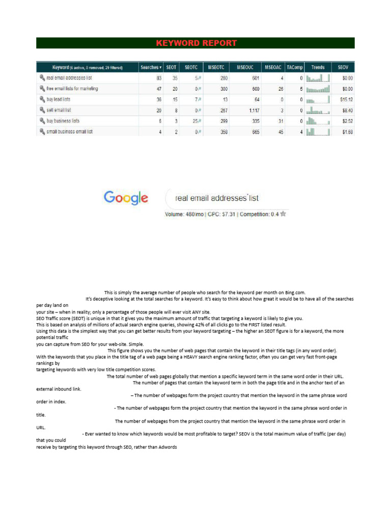 SEO Traffic (SEOT) -It’s deceptive looking at the total searches for a keyword. It’s easy to think about how great it would be to have all of the searches