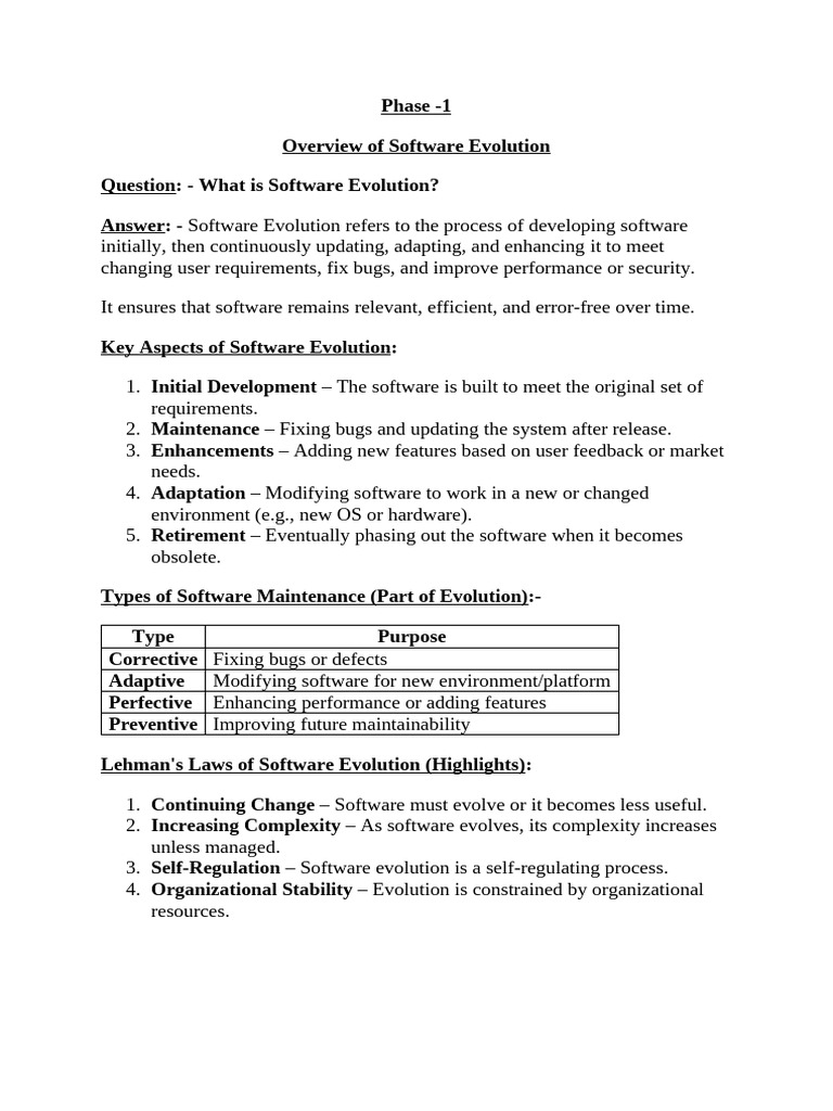 Answer: - Software Evolution refers to the process of developing software