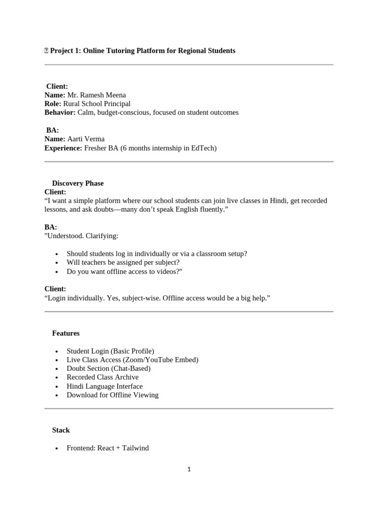 ✅ Project 1: Online Tutoring Platform for Regional Students