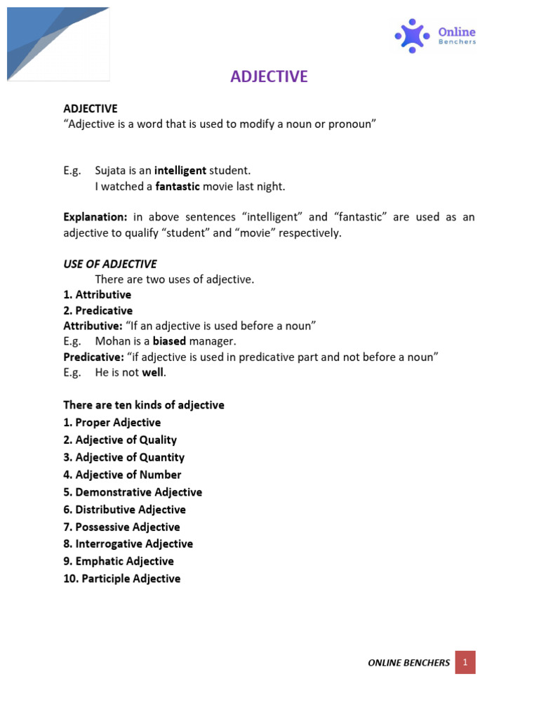 There are two uses of adjective.