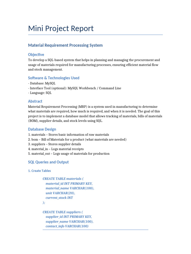 (BOM), supplier details, and stock levels using SQL.
