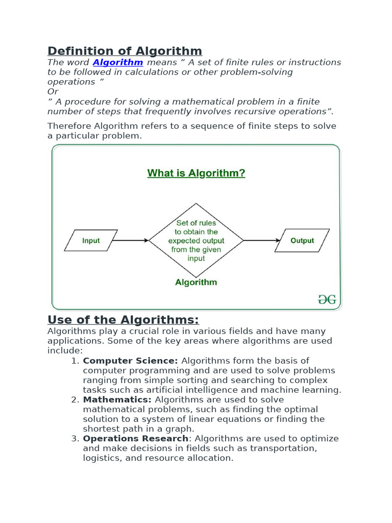 applications. Some of the key areas where algorithms are used