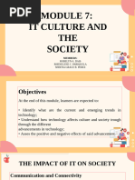 - IT shapes cultural norms and influences how people communicate and behave in social