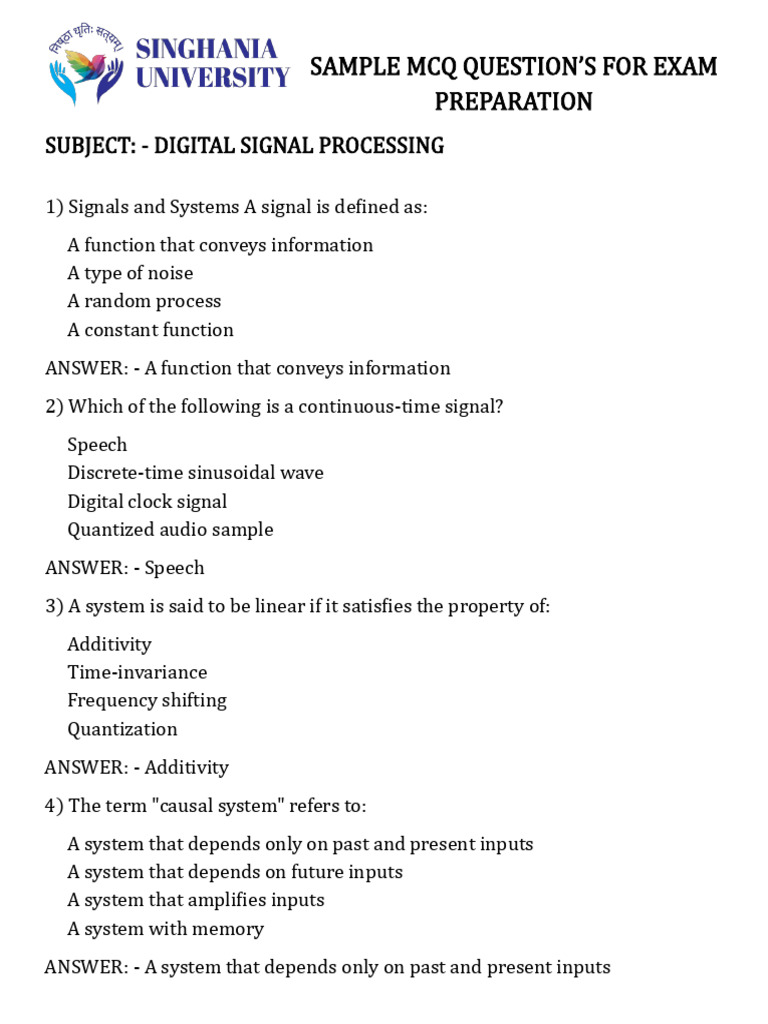 SUBJECT: - DIGITAL SIGNAL PROCESSING