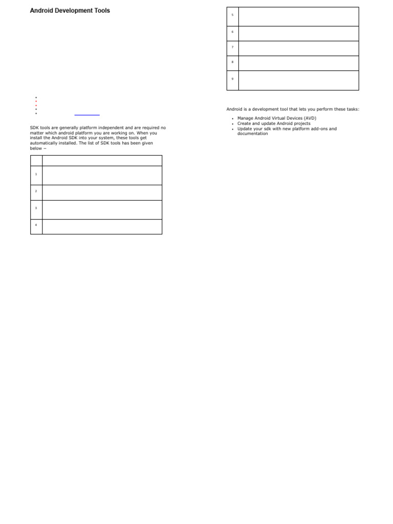 Current Version of the Android platform Android is a development tool that lets you perform these tasks:
