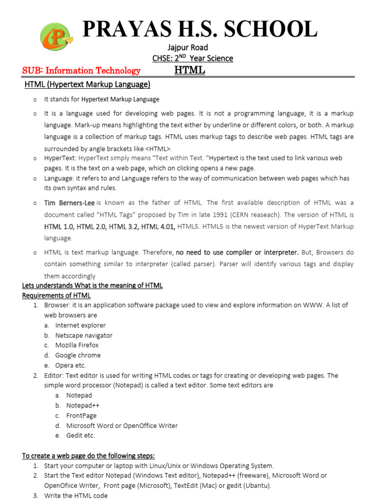 o It is a language used for developing web pages. It is not a programming language, it is a markup