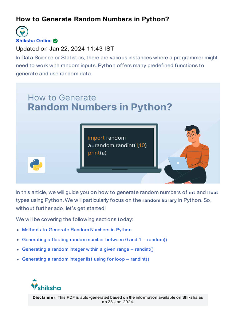 Disclaim e r: This PDF is auto -generated based o n the info rmatio n available o n Shiksha as