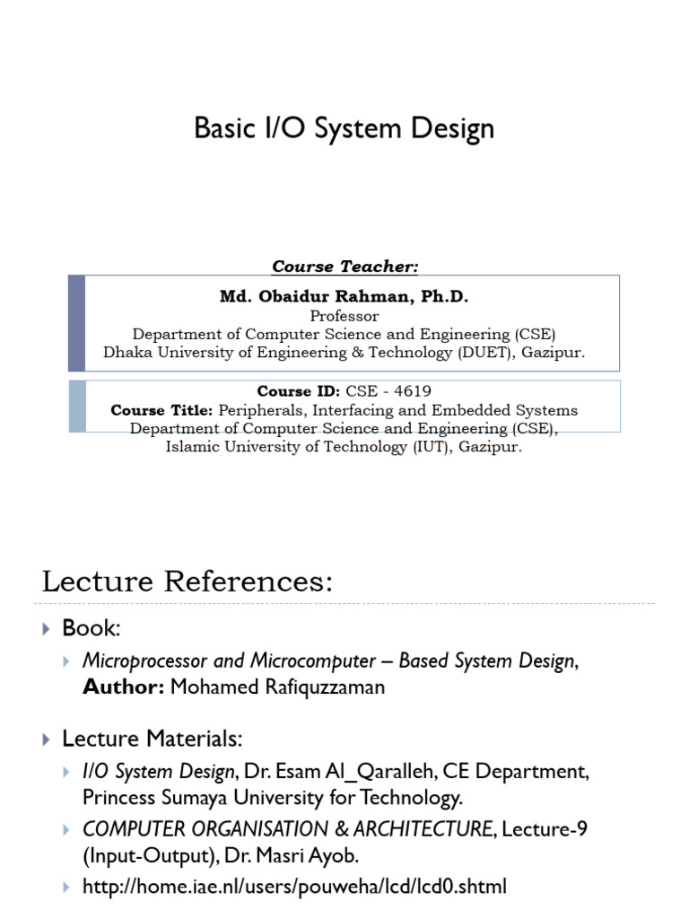 Course Title: Peripherals, Interfacing and Embedded Systems