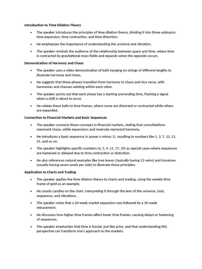 He discusses how higher time frames affect lower time frames, causing delays or hastening