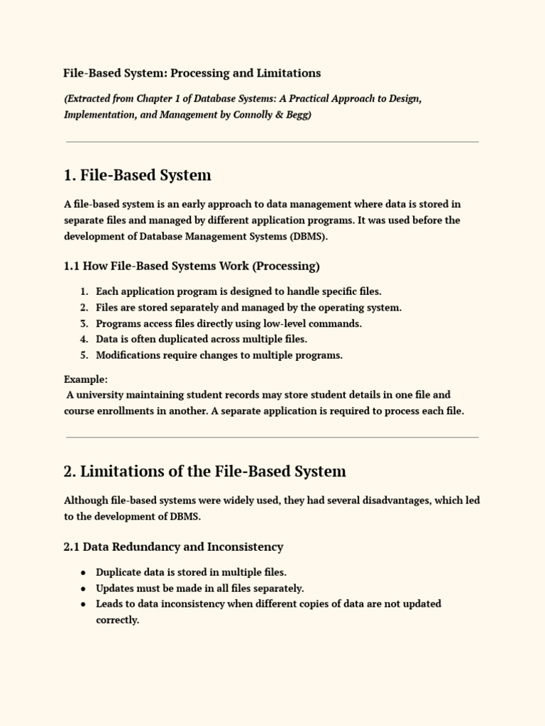 traditional file-based system. Instead of storing data in separate files controlled by individual