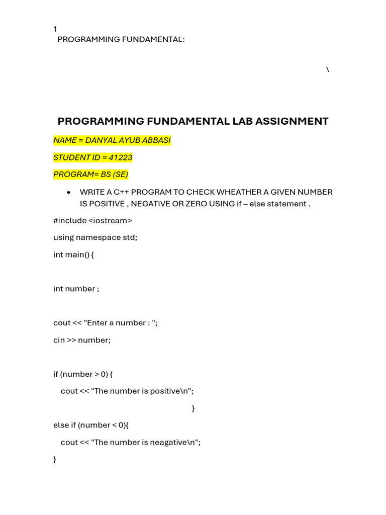 PROGRAMMING FUNDAMENTAL LAB ASSIGNMENT