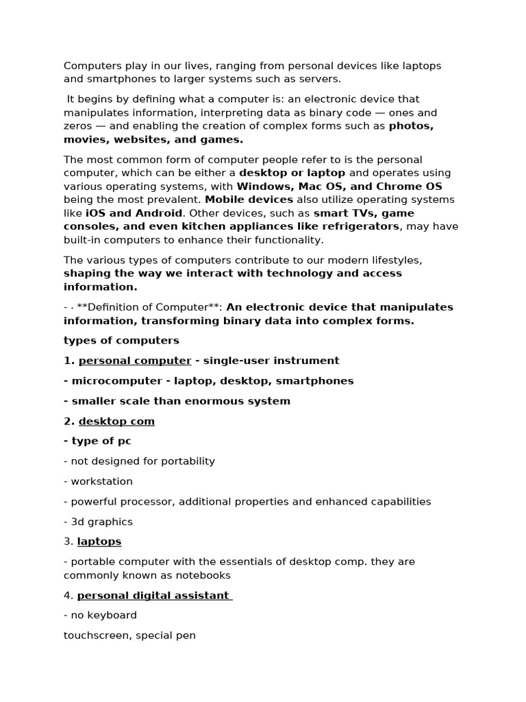 - 💻 **Definition of Computer**: An electronic device that manipulates