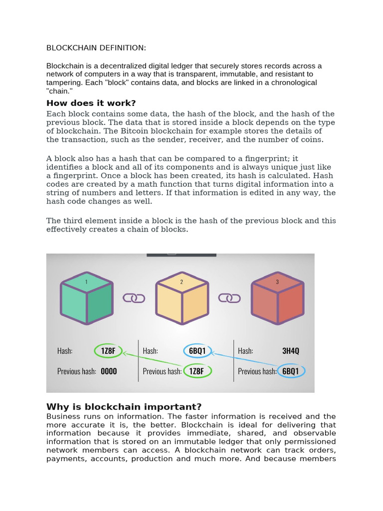 tampering. Each "block" contains data, and blocks are linked in a chronological