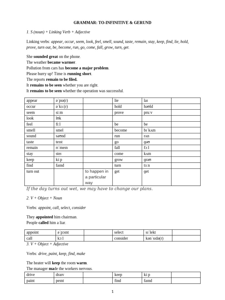 Linking verbs: appear, occur, seem, look, feel, smell, sound, taste, remain, stay, keep, find, lie, hold,