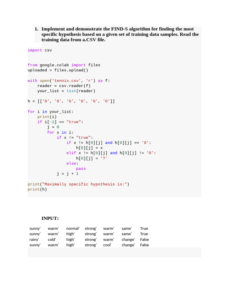 Implement and demonstrate the FIND-S algorithm for finding the most