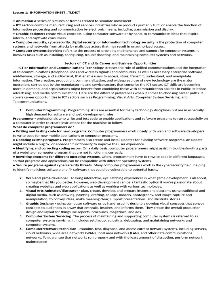 Lesson 1: INFORMATION SHEET _TLE-ICT