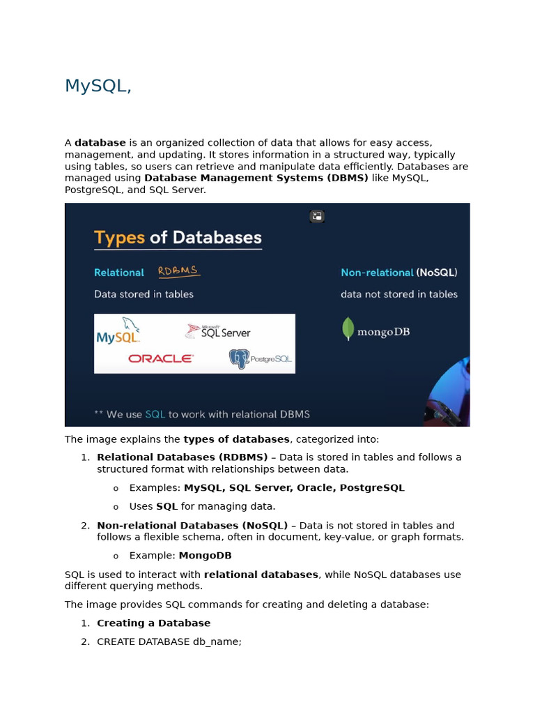 o Examples: MySQL, SQL Server, Oracle, PostgreSQL