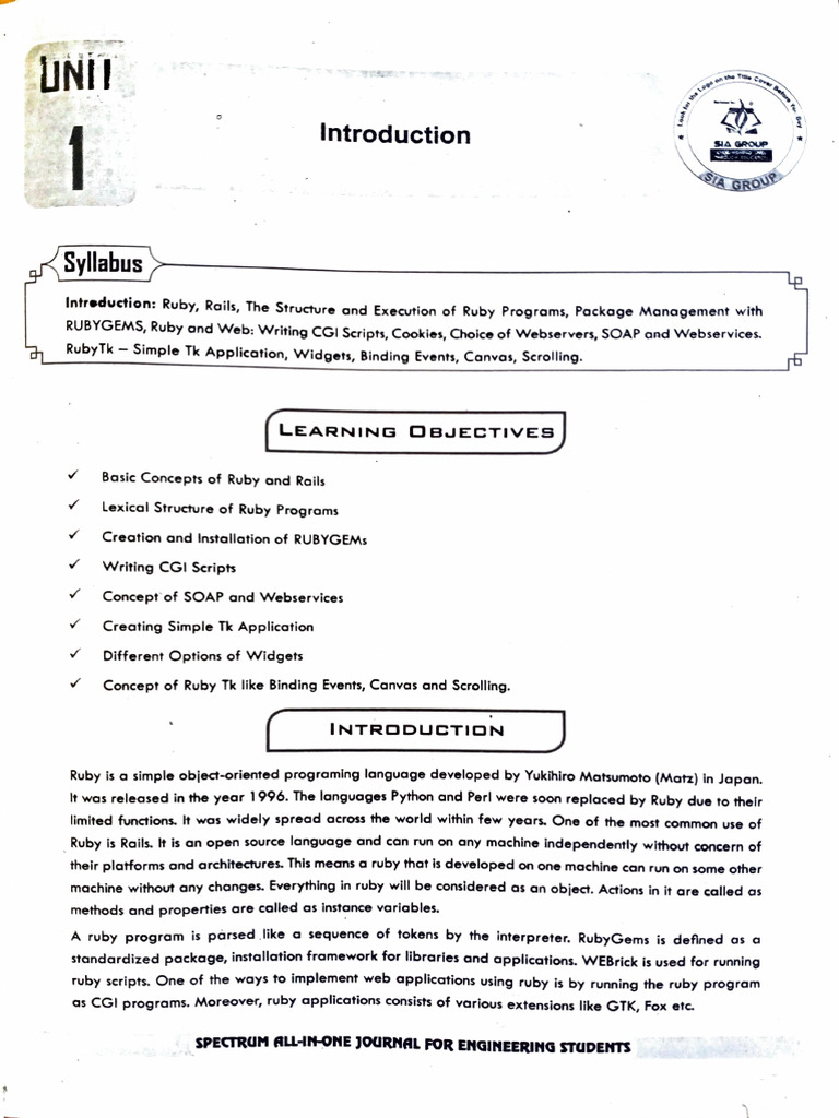 RUBYGEMS, Ruby ond Web: Writing CGI Seripts, Cookies, Choice of Webservers, SOAP and Webservices.